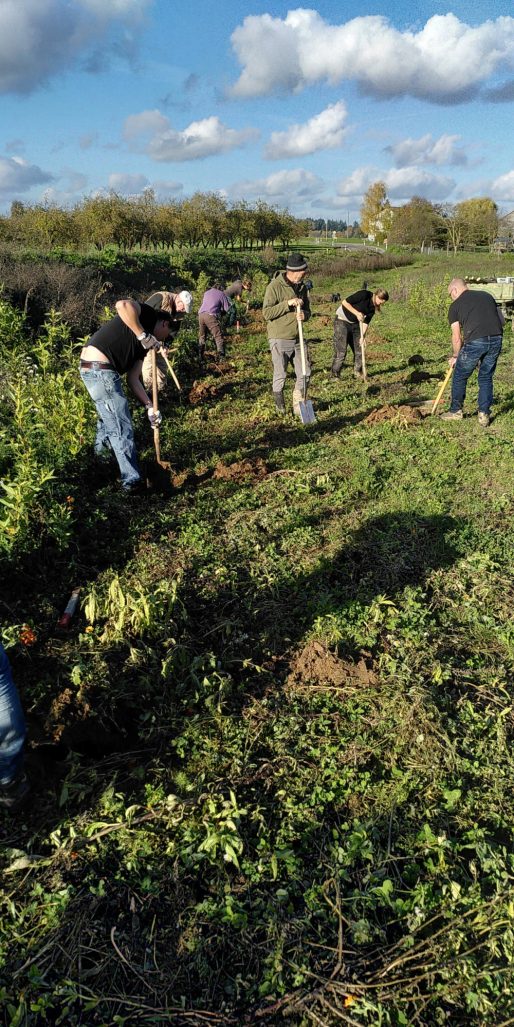 Anfang November haben die Mitglieder der SOLAWI entlang des Gemüseackers in Neuenstein-Neureut auf ca. 30 ar Bäume, Sträucher und Wildhecken gepflanzt. Die Projektgruppe hat die Pflanzung organisiert. Durch die Wahl der unterschiedlichsten Pflanzen wie z.B. Gewürzluike, Speierling, Mispel, Weißdorn und Heckenrosen ergibt sich eine große Sortenvielfalt. Dadurch finden viele Kleinsäuger, Vögel und Insekten Unterschlupf und Nahrung. Diese helfen mit, Schädlinge vom leckeren Gemüse fernzuhalten. Schon donnerstags haben viele freiwillige Helfererinnen und Helfer zur Vorbereitung der Pflanzung Baumlöcher gegraben. Samstags wurde dann bei optimalen Wetterbedingungen gepflanzt und eingezäunt. Eine schmackhafte Suppe aus SOLAWI-Gemüse gab neue Kraft für den Nachmittag. Ein Apfelkuchen am späten Nachmittag rundete das Ganze ab. Die nächsten Jahre können wir uns am Wachsen der Pflanzen erfreuen und irgendwann einmal die leckeren Früchte genießen.